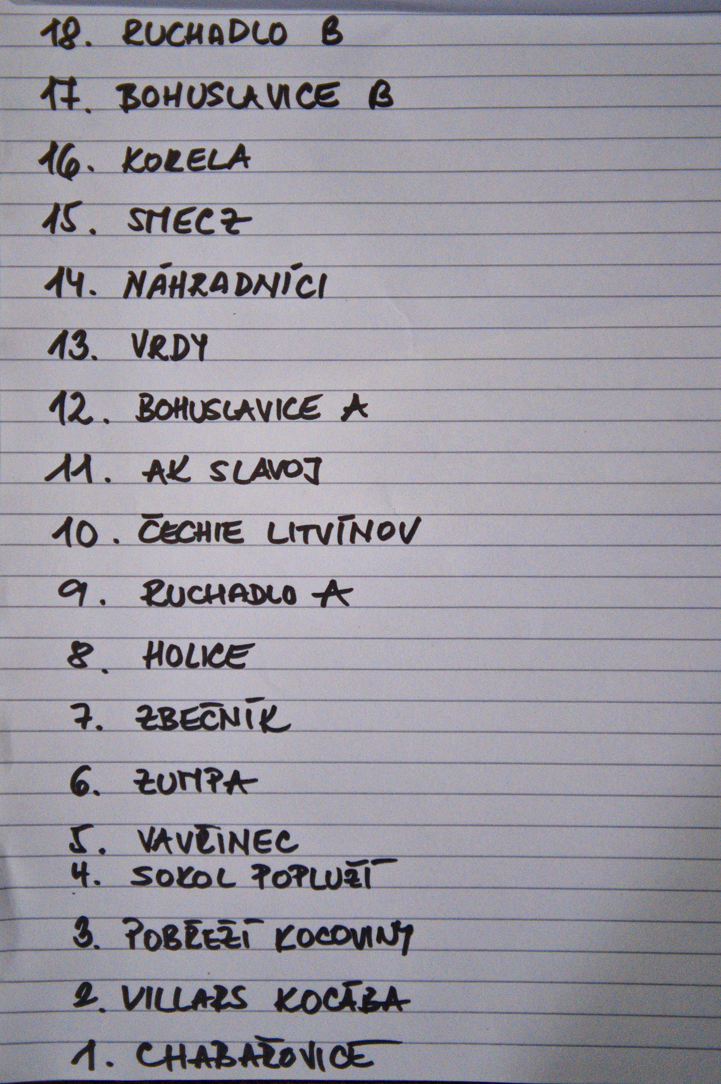 5. Žďár nS ( Fňukal, Krmášek, Pešek -- nakonec bez ohlášení neúčast, náhrada na místě nalezenými hráči)
