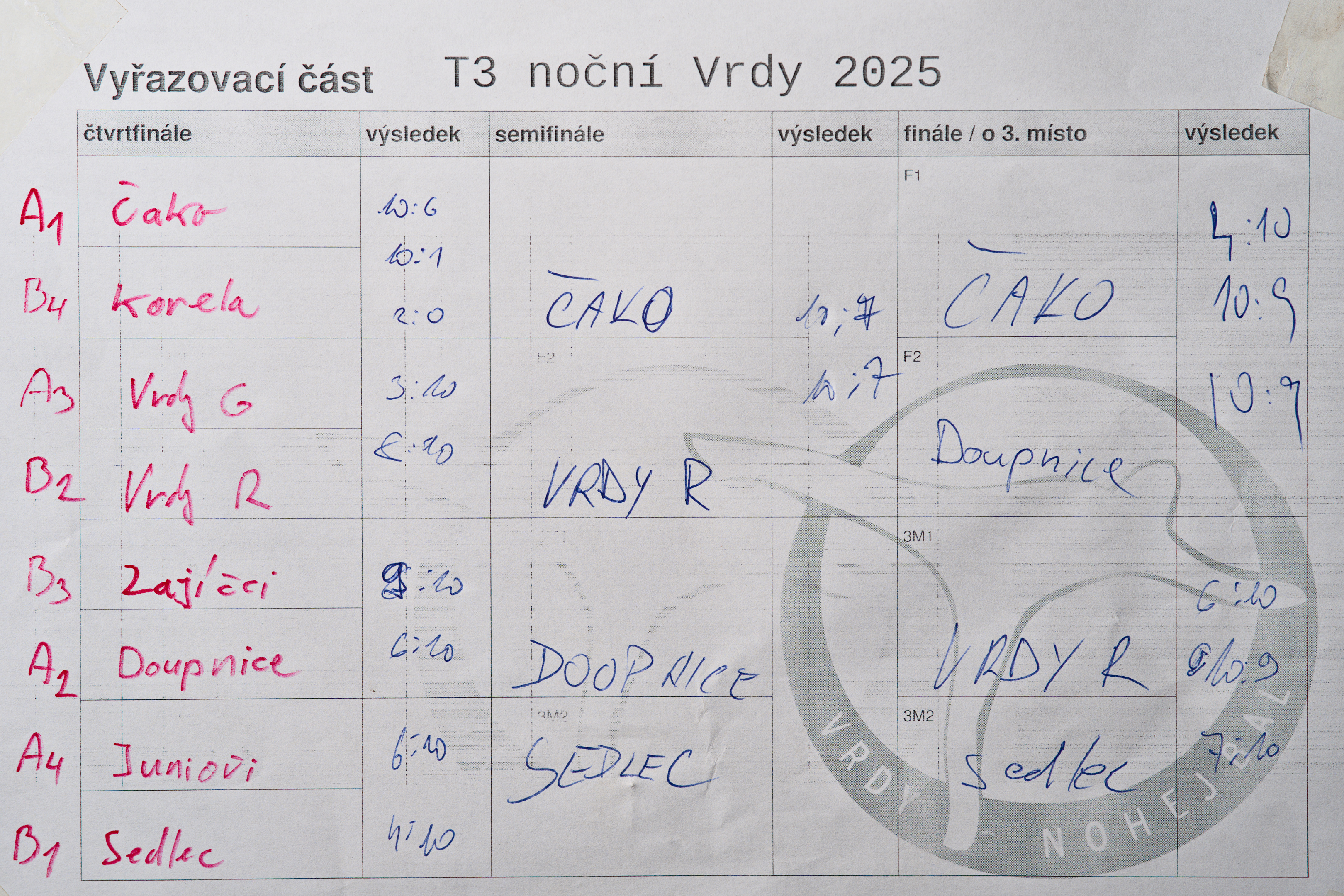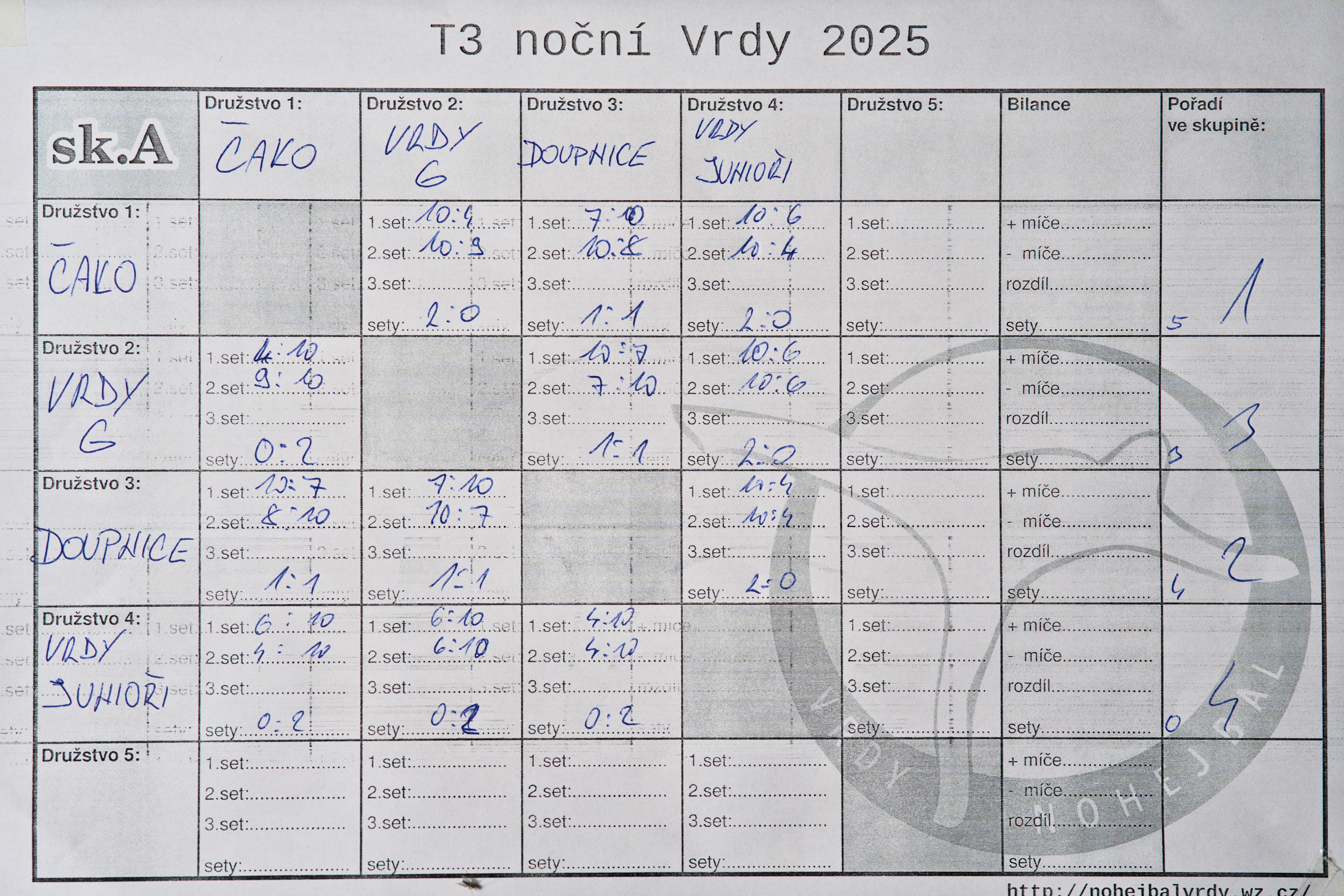 Naprostá klasika ... posvícenský turnaj po 26. a z toho po 11. v noci. Počasí letos vyšlo skvěle. Chladné a propršené léto, ale pár dní před turnajem se začalo dělat hezky, teplá noc ... tak akorát. Jako bonus 2 hodiny před turnajem deštík na zakropení hřiště ... více už si přát nelze. Účastníků nakonec 8, Vsetín odhlásil na poslední chvíli, ale na noční turnaj je tento počet přesně akorát.