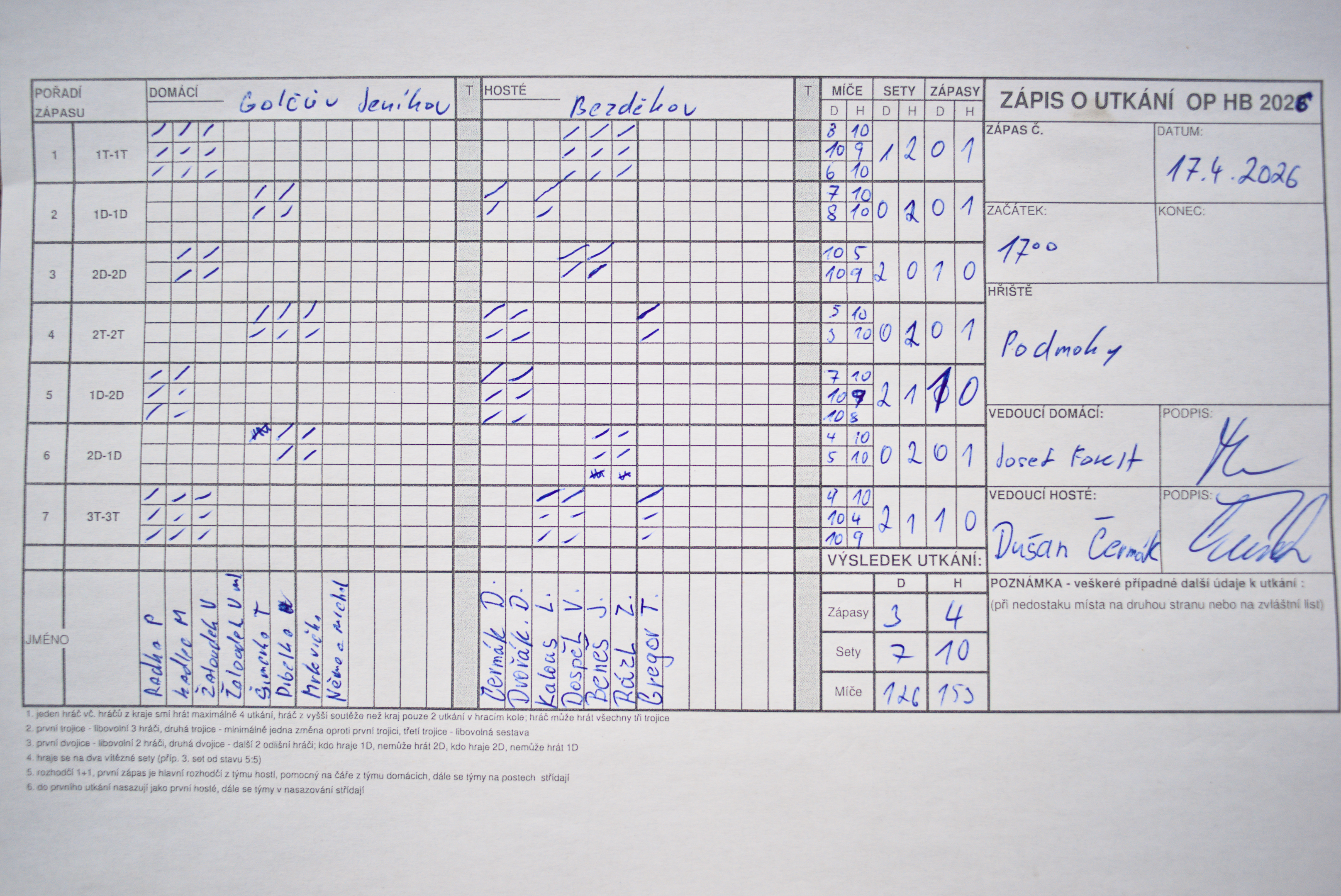 V utkání rozhodla hned první trojka, kterou uzmul Bezděkov ve dvou setech. Potom už Milan udělal svoje zápasy a Bezděkov vzal zbytek.