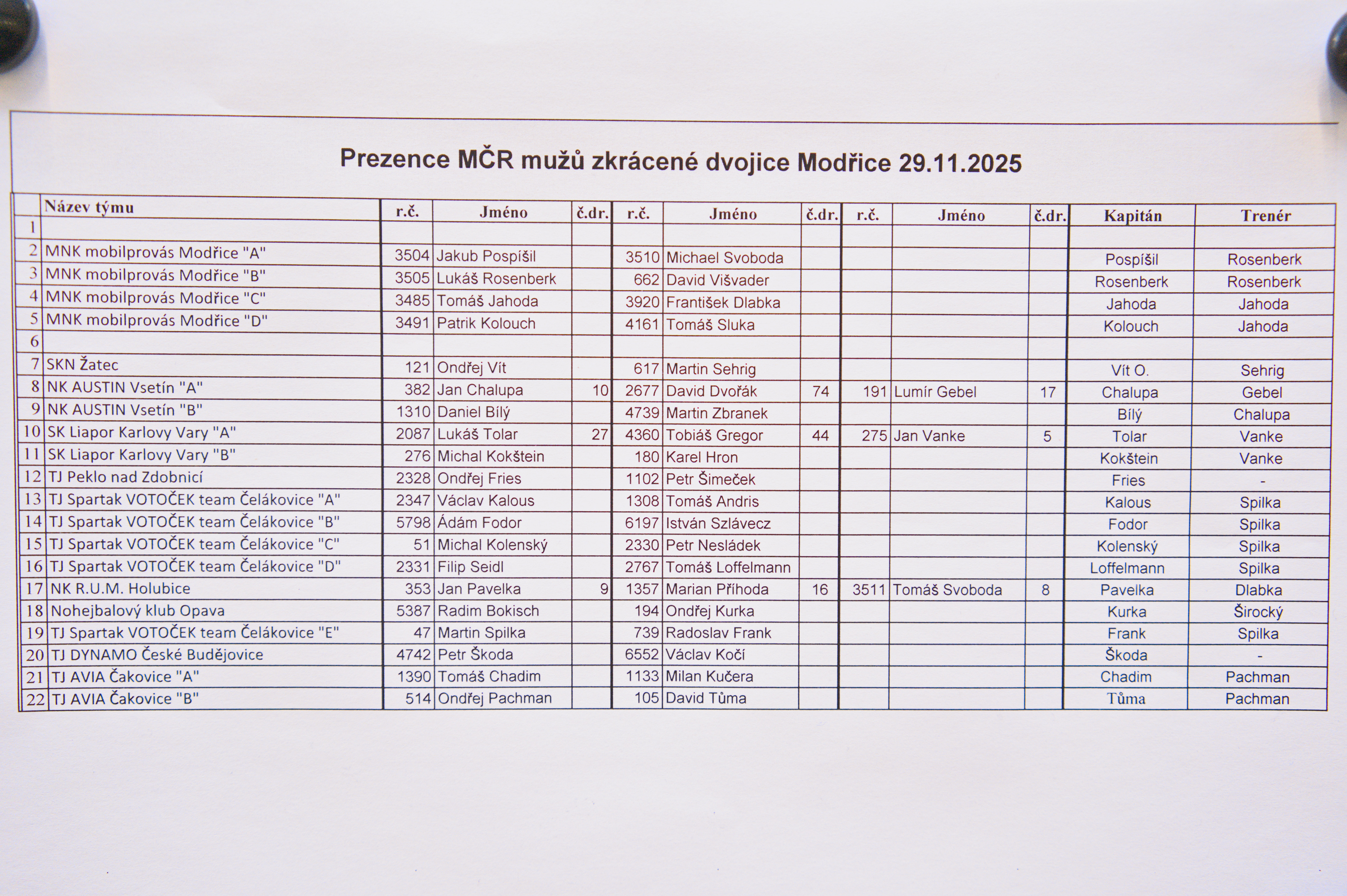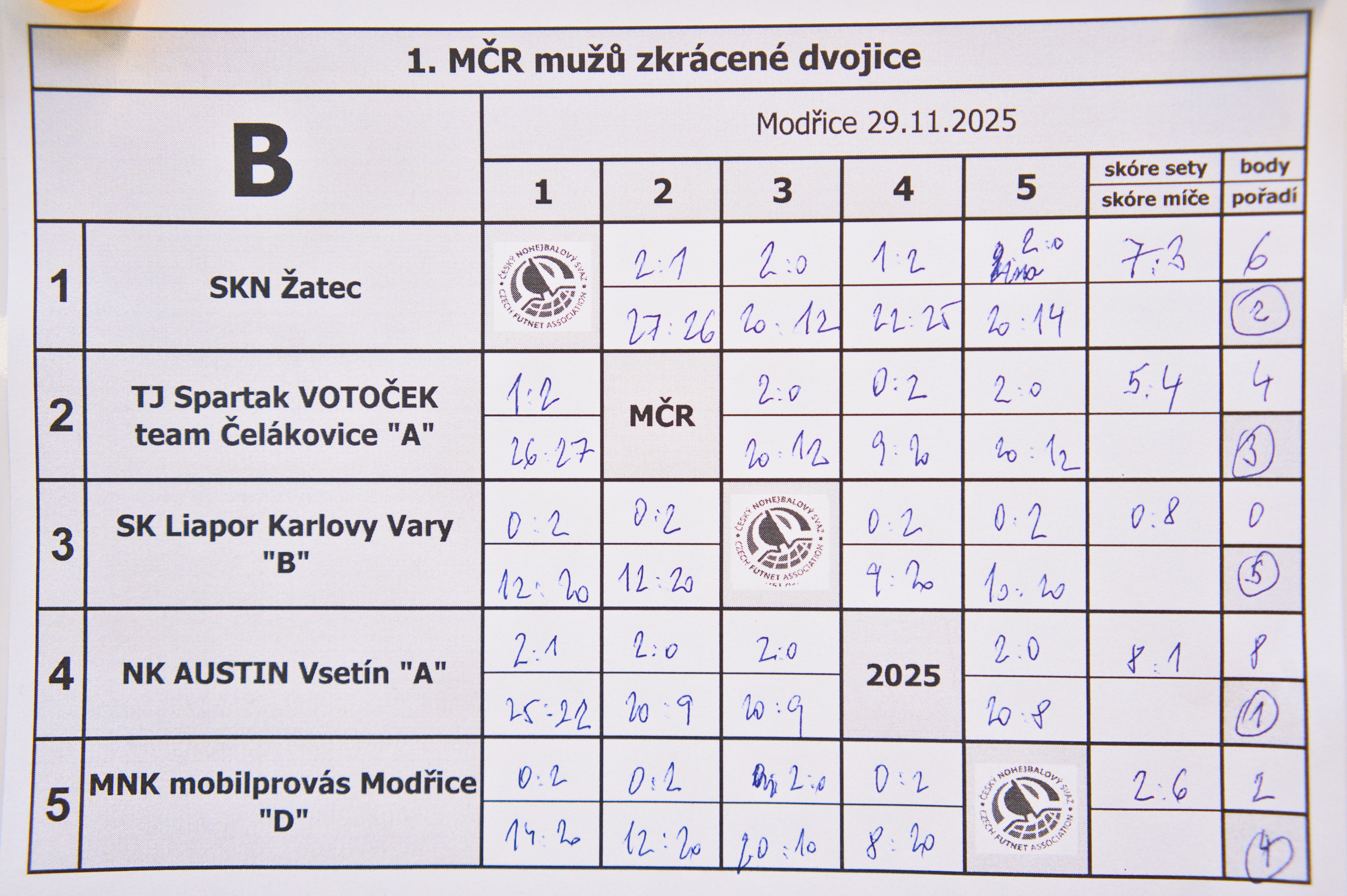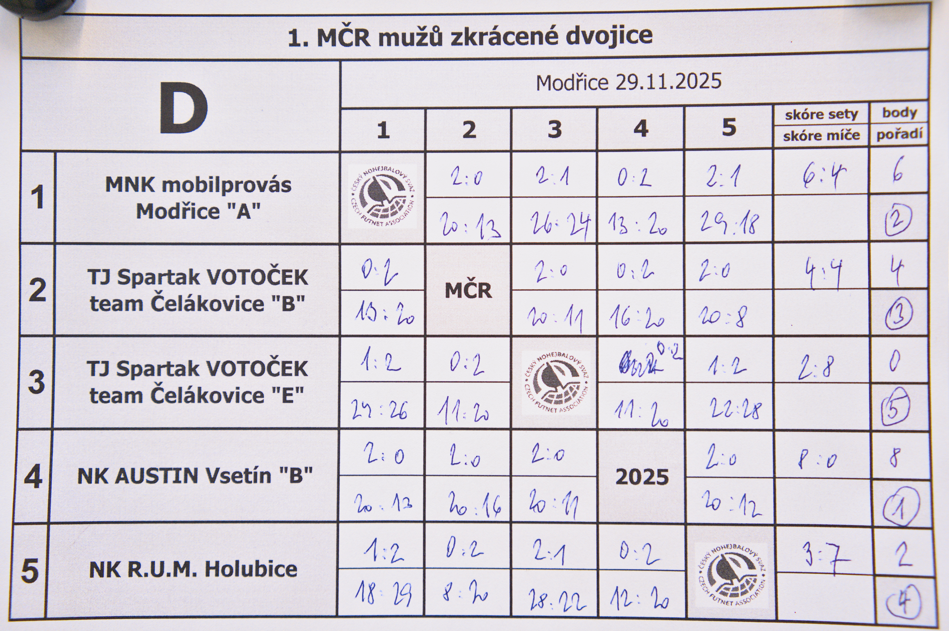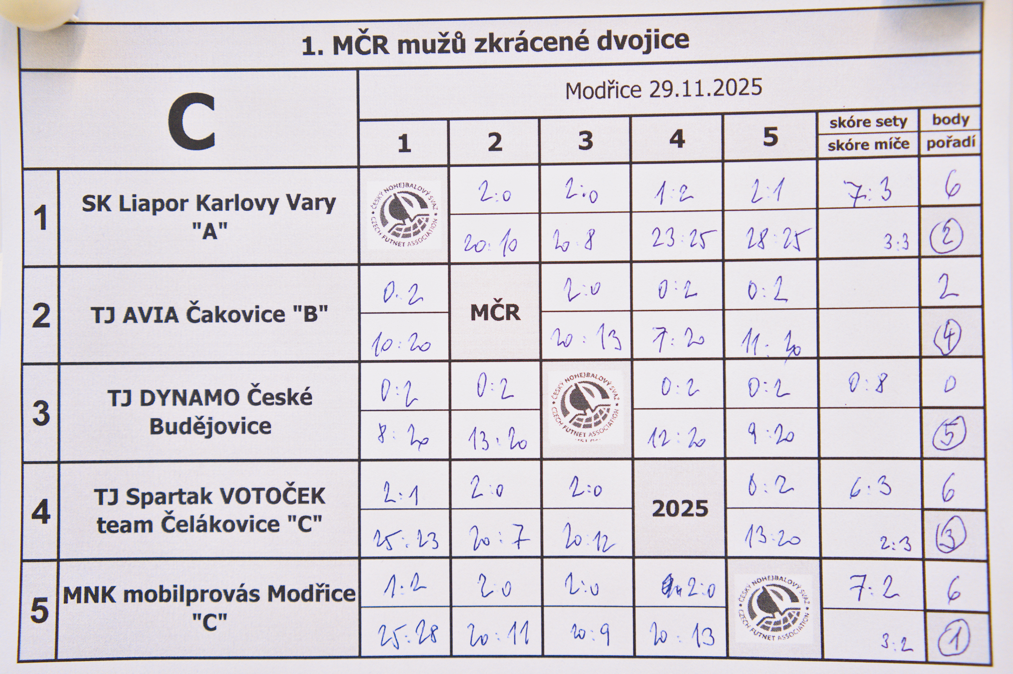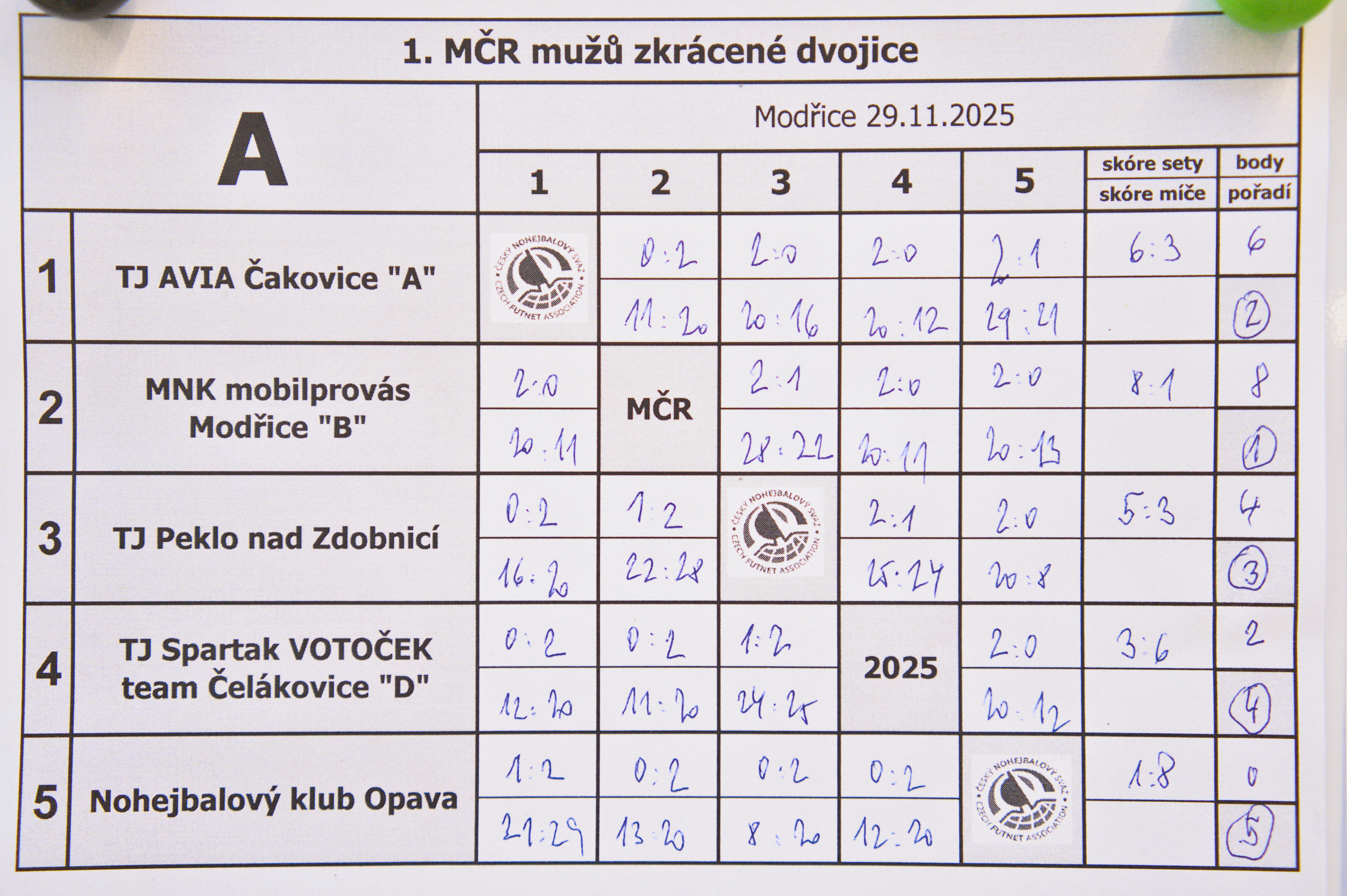 1.ročník zkrácených dvojic. Pro muže to znamená 1 dopad, zkrácené hřiště, počítání do 10 a pravidla nohejbalu.