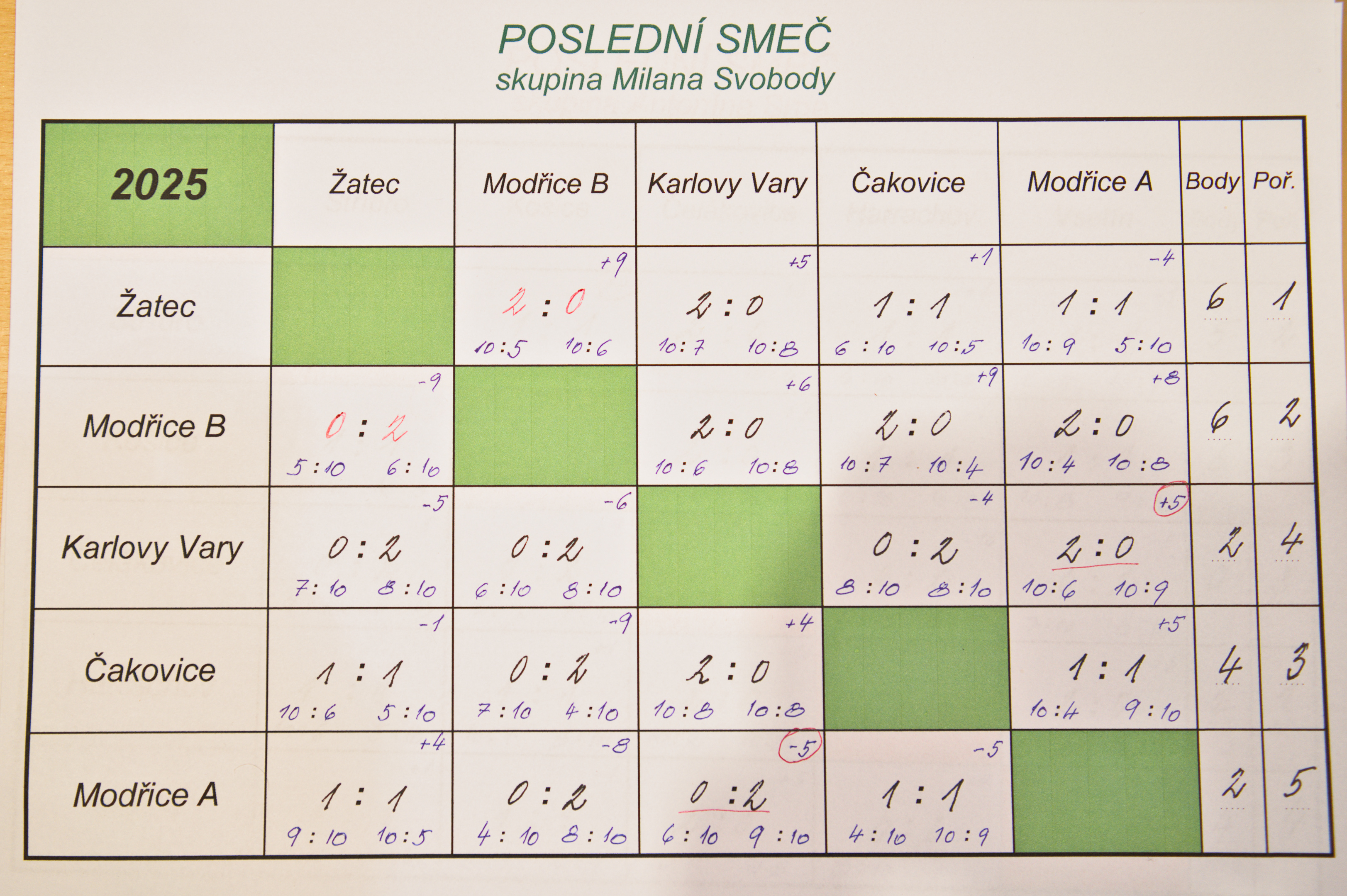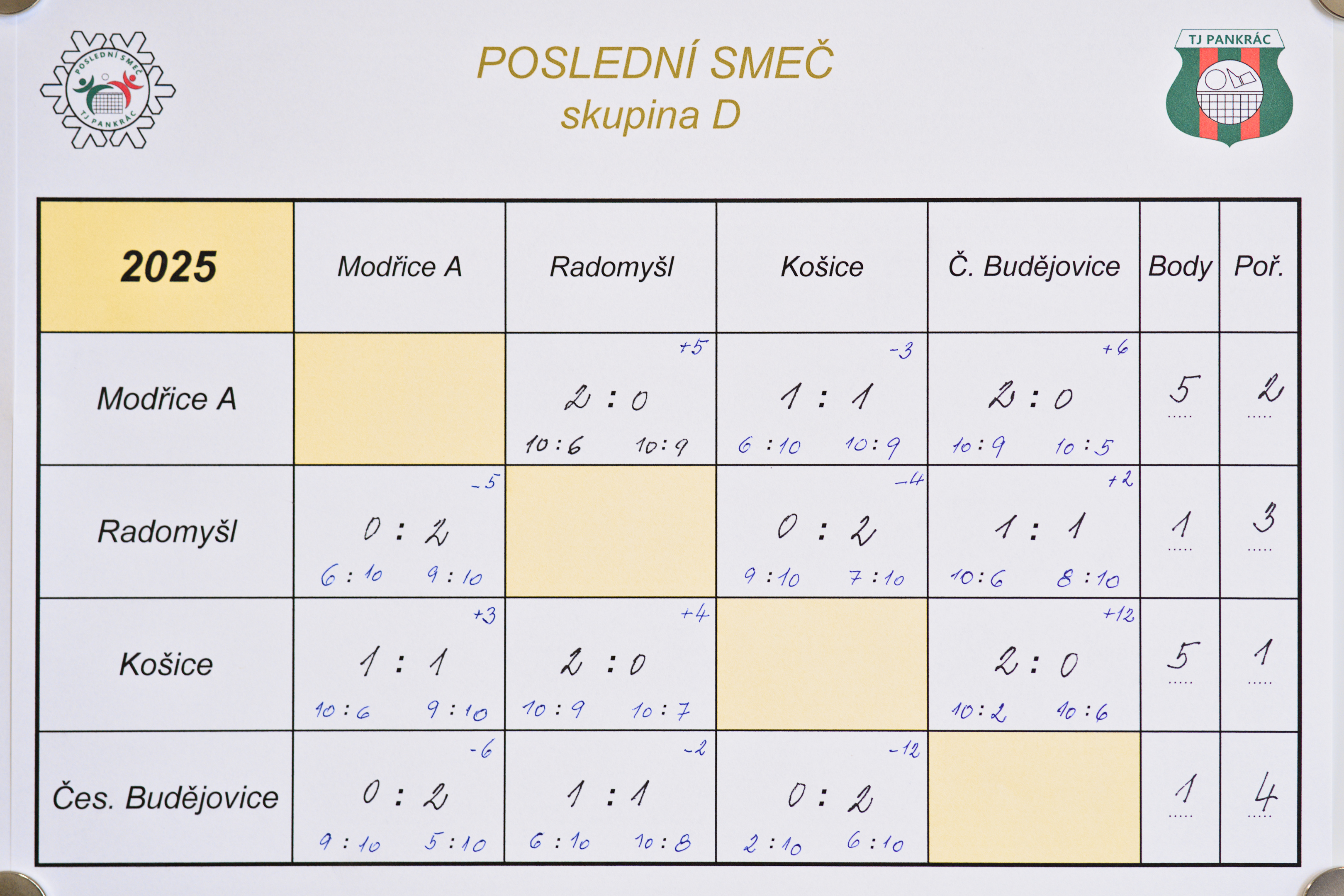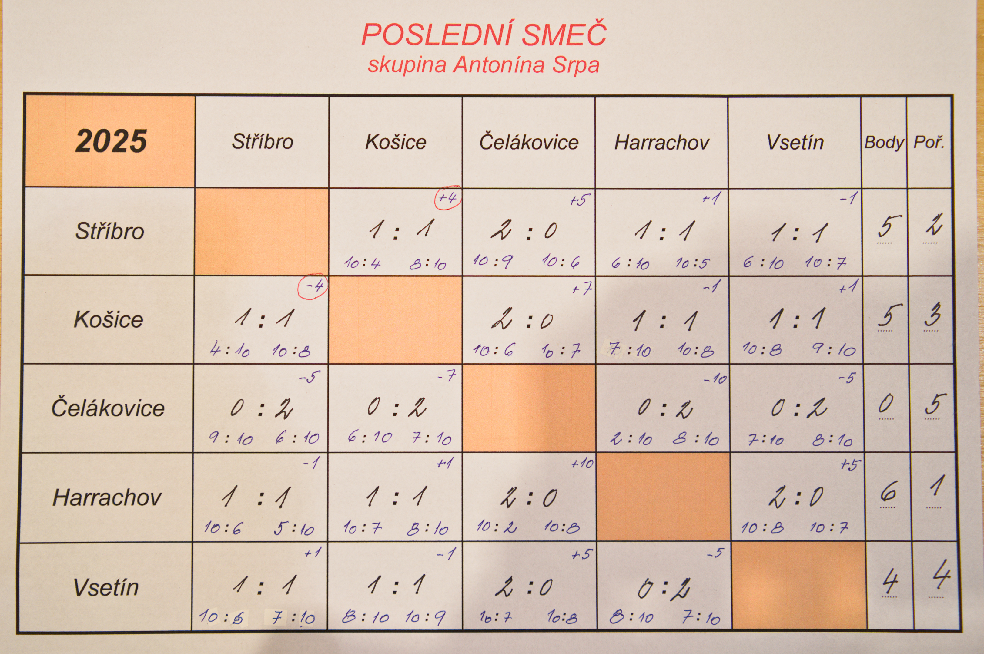 Výsledkové listy níže.