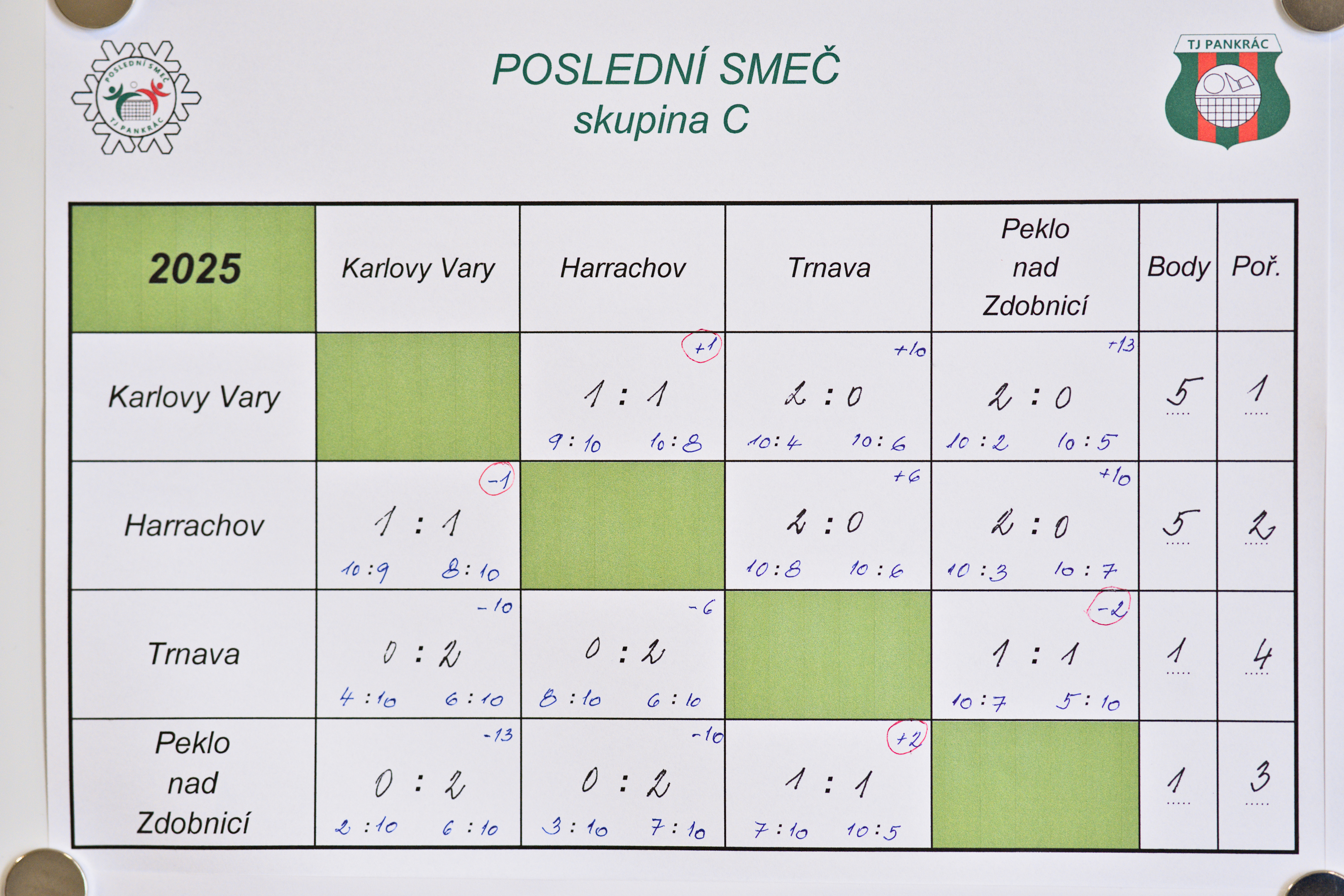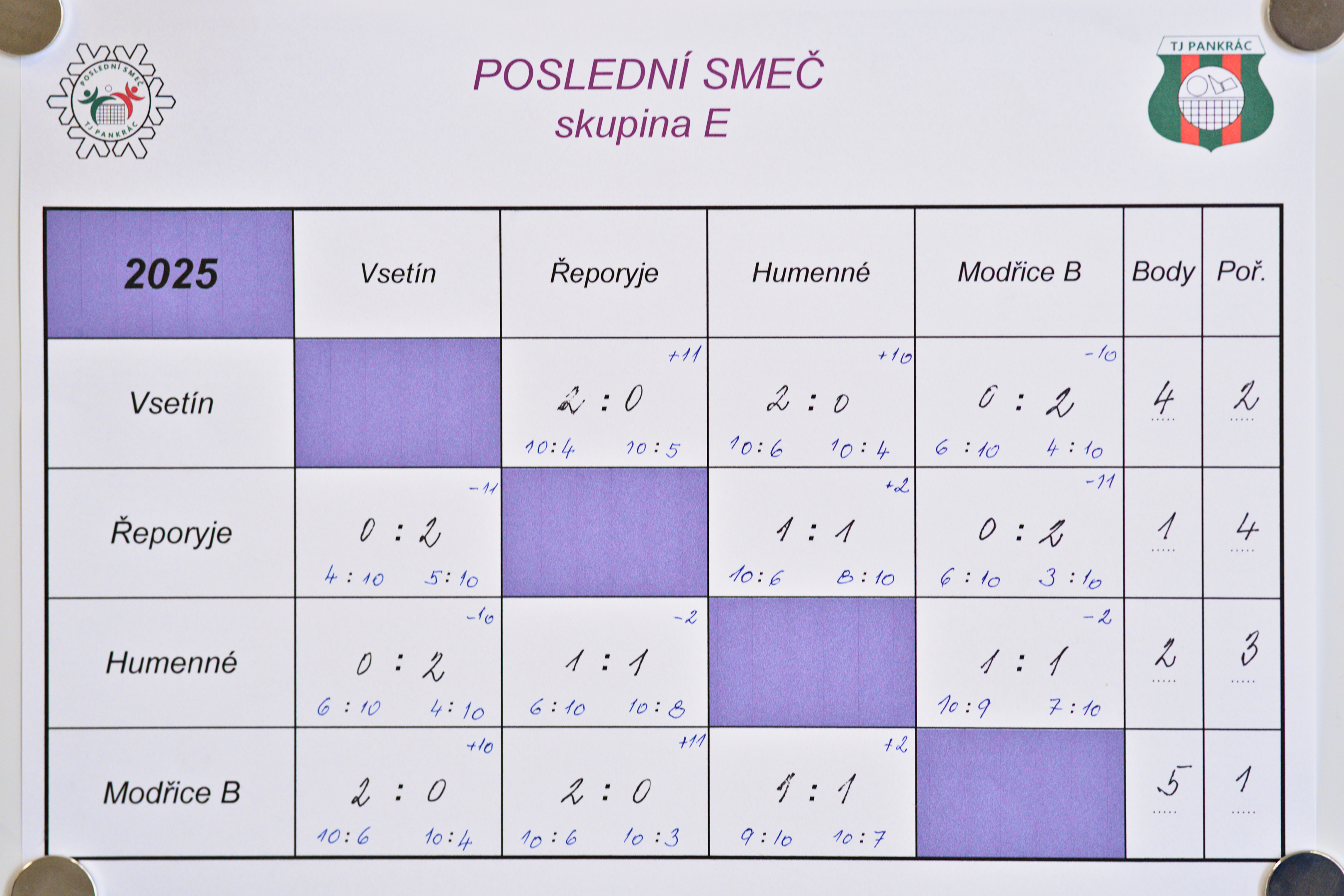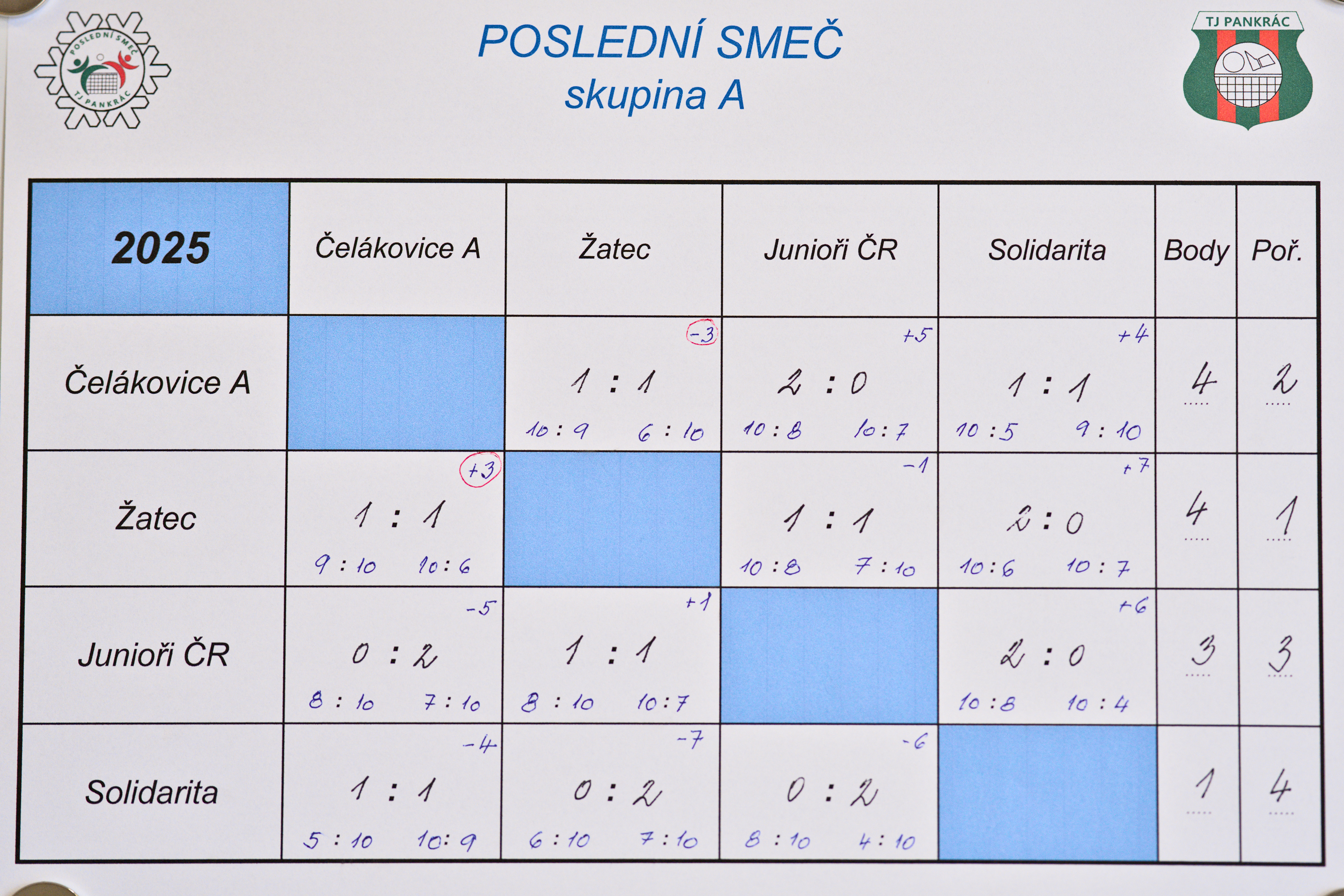 Výsledkové listy níže.